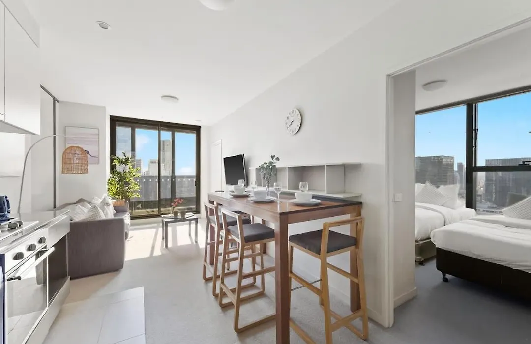 The self-catering facilities feature a fully furnished kitchen with an electric kettle, a refrigerator, and kitchenware. Flinders Street train station is merely 0.7 km away, and Banana Alley Vaults/Flinders Street bus stop is a few steps from this apartment. There is also a patio with views of the city.